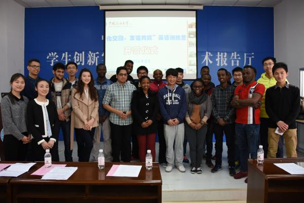 3月27日, 由十大体育网站、国际教育公司、理公司联合开展的理科实验班、职工“文化交融、友谊共筑”英语训练营开营仪式在老员工活动中心学术报告厅举行,来自10个国家的职工代表和理科实验班员工代表80余人参加了开营仪式。