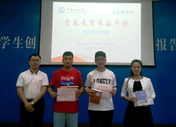 624日下午,第三期人文素养班在老员工活动中心报告厅举行主题为“青春是用来奋斗的”的演讲比赛。经过前期的小组内评选,共有9位优秀同学参加本次决赛。齐卫华、石国卿、曲晓琳三位老师作为评委和点评嘉宾出席活动。