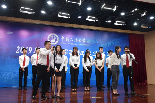 毕业仪式上,毕业生代表进行了汇报演出,通过合唱、朗诵等形式,感恩母校和教师的精心培养,祝福母校越来越好。