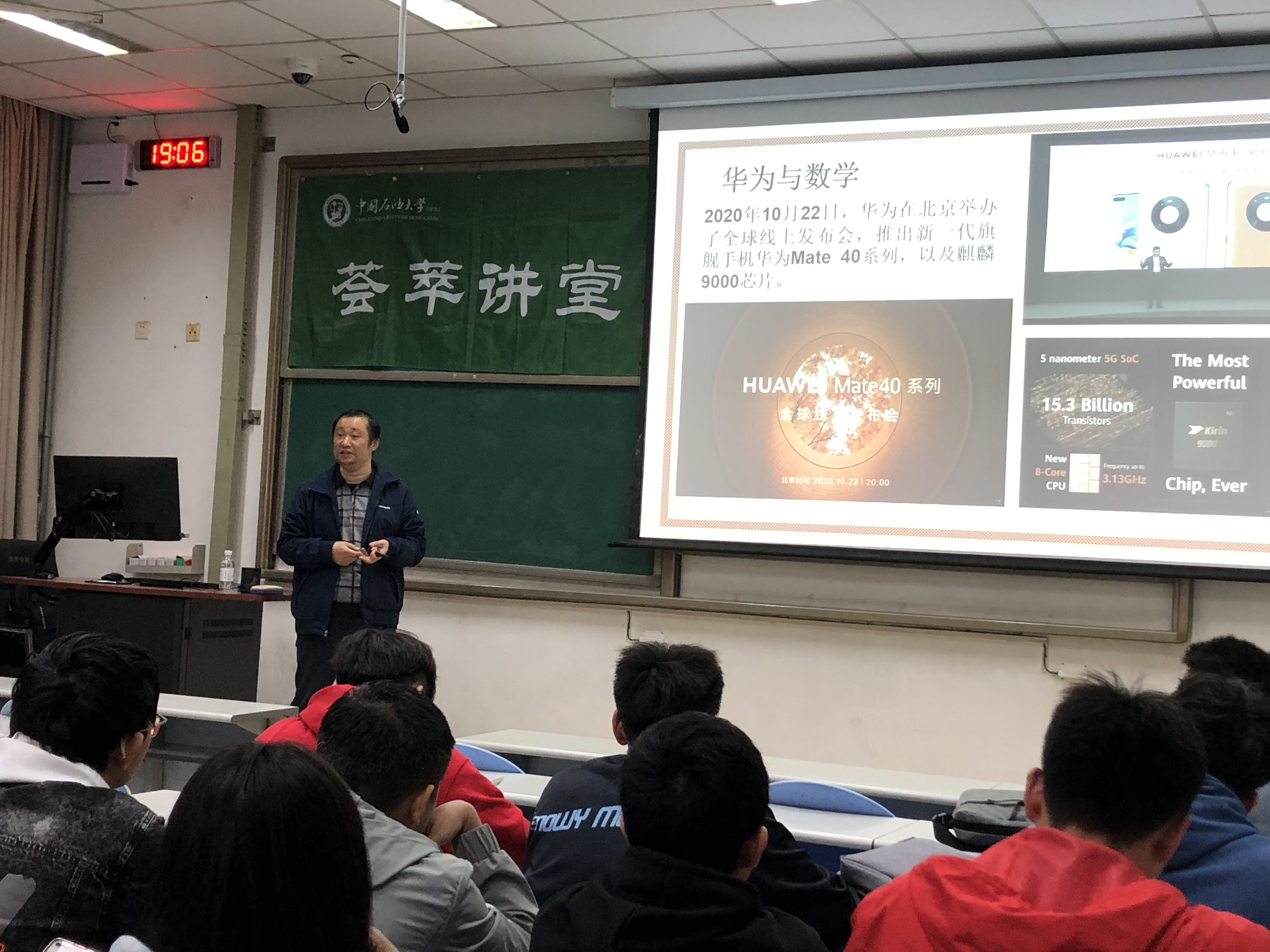 陈老师从华为与数学的关系开讲,以华为近期新产品Mate40系列,重点讲解其在数学运算方面的优越性能,说明华为产品的研发离不开数学,华为也因此对数学建模比赛关注甚多并出资设立相关奖学金。紧接着,陈老师介绍了数学建模竞赛的起源、发展历史,并讲解往年数模竞赛真题,通过真题预测题目趋势,使得同学们了解竞赛基本情况,做到心中有“数”。为鼓励同学们踊跃参与竞赛,陈老师介绍了公司历年参赛及获奖情况,推荐数部专业辅导教材为同学们的备赛助力。他鼓励大家树立信心,像理科实验班的学长学姐们一样继续以优异的成绩为公司添光加彩。最后,陈老师讲解数学建模在现实生活中的应用,如开普勒三定律等,从现实中提炼总结数学模型,又从数学模型回归现实,所蕴含的哲学思想非常值得我们学习借鉴。
