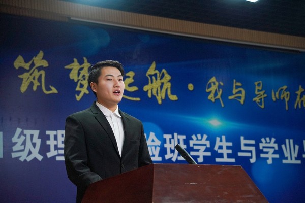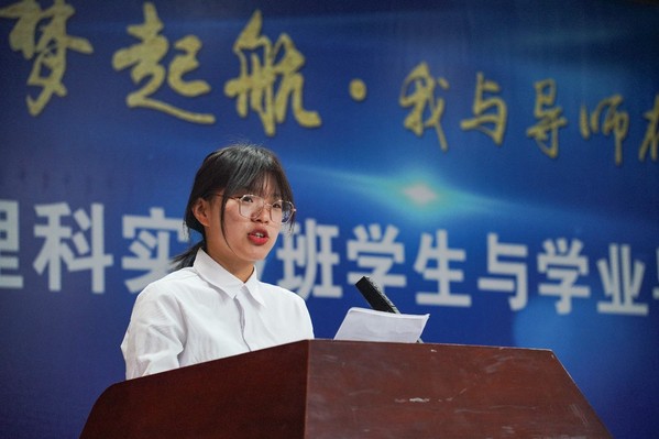 理科实验班2018级员工韩志龙发言认为理科实验班特有的培养模式给自己带来的更多是启迪与激励,在这里可以感受到多学科交叉和全面教育的魅力。2021级新生王堃则表示在未来四年中要握紧手中的接力棒,秉承石大精神,发愤图强,锲而不舍,成为能担重任的栋梁之才,谱写精彩的人生。