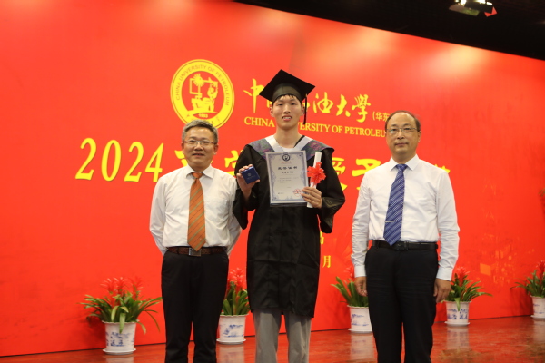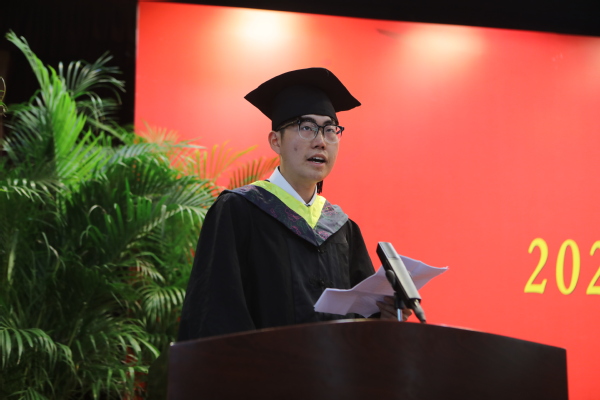 员工代表潘乾曜代表毕业生发言,他感谢母校、老师和父母的悉心教导和精心培育,感谢理科实验班提供的优质资源和平台,“厚基础、宽口径、强交叉、重创新”的培养方式,为员工成长成才搭建了“高速路”。有思想,方能不忘初心,才能于平凡中创造价值、于危机中砥砺前行。面对未来,他表示要发扬“家国同心、艰苦奋斗、惟真惟实、追求卓越”的石大精神,努力做一名值得尊敬的石大人!
